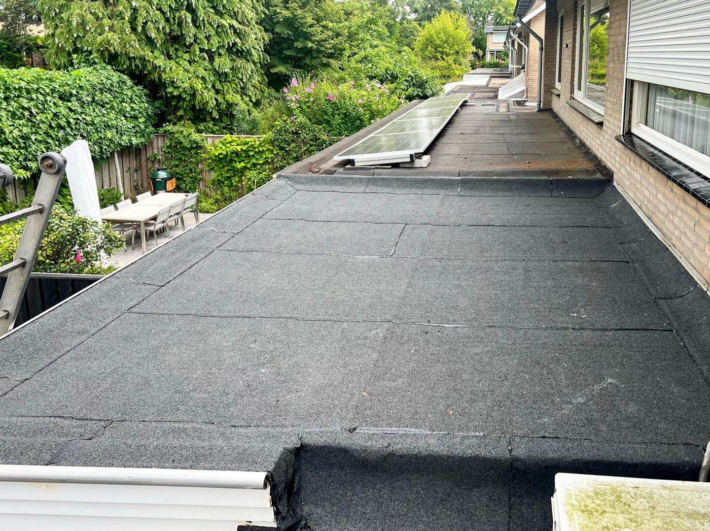 Flat roofs are particularly vulnerable to weather conditions and require regular maintenance to prevent issues such as leaks. The roof of this home in Waalre was visibly worn down over the years. Cracks and splits in the roofing material posed a serious risk of water damage and structural issues.